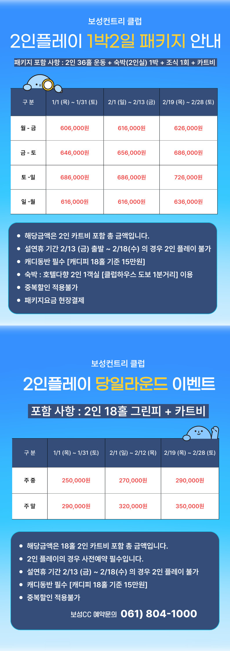 2인플레이 패키지 및 그린피 이벤트 안내!