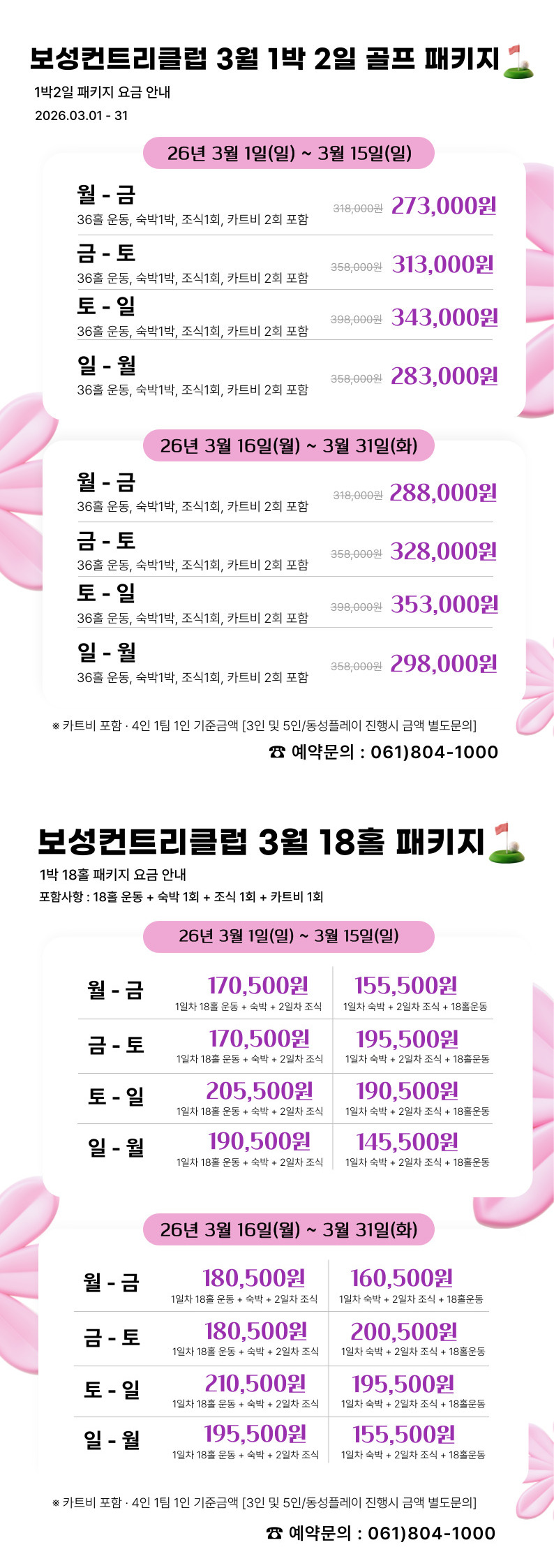 3월 1박2일 · 1박18홀 골프 패키지 이벤트