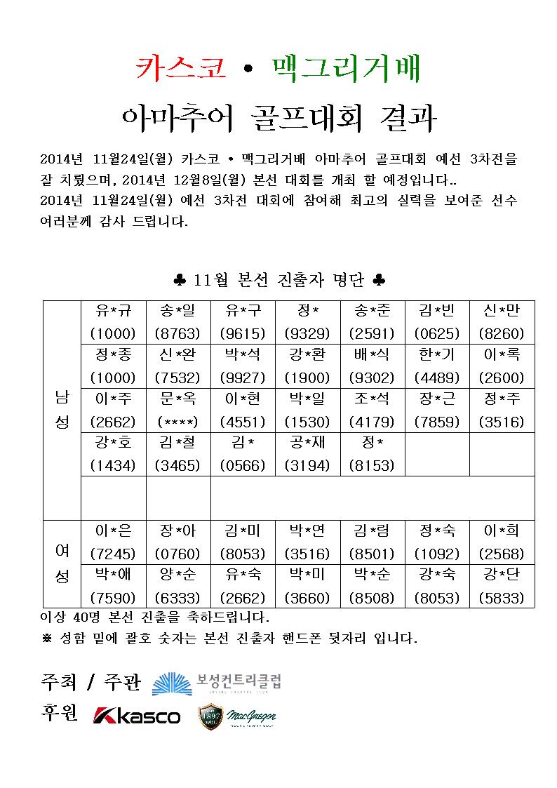 [조편성표] 예선3차전 카스코 · 맥그리거 아마추어 골프대회
