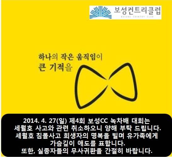 세월호 침몰사고 애도와 제4회 보성CC 녹차배 취소 안내