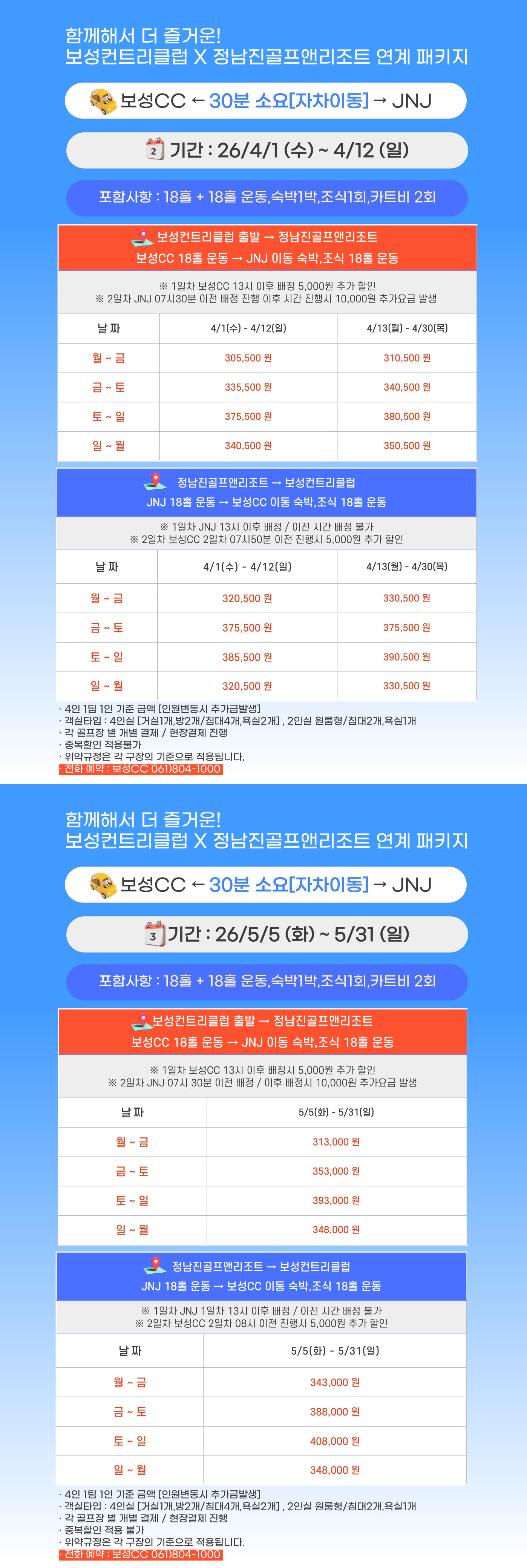4-5월 JNJ X 보성CC 연계패키지 요금