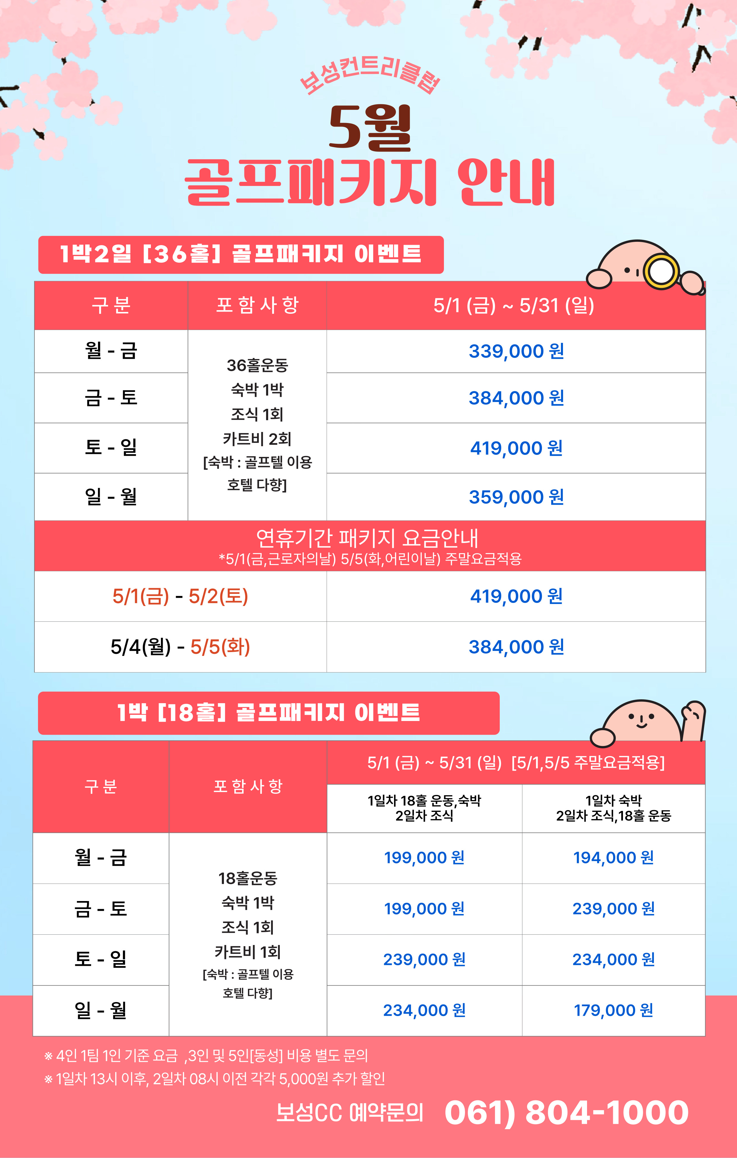 4-5월 JNJ X 보성CC 연계패키지 요금